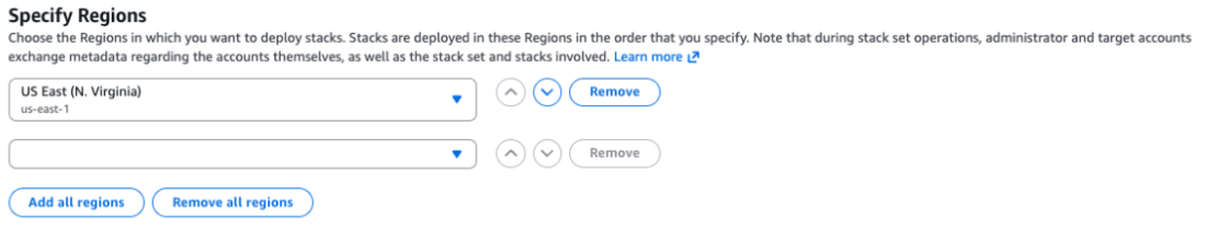 3. **Specify Regions** - Choose **us-east-1**
