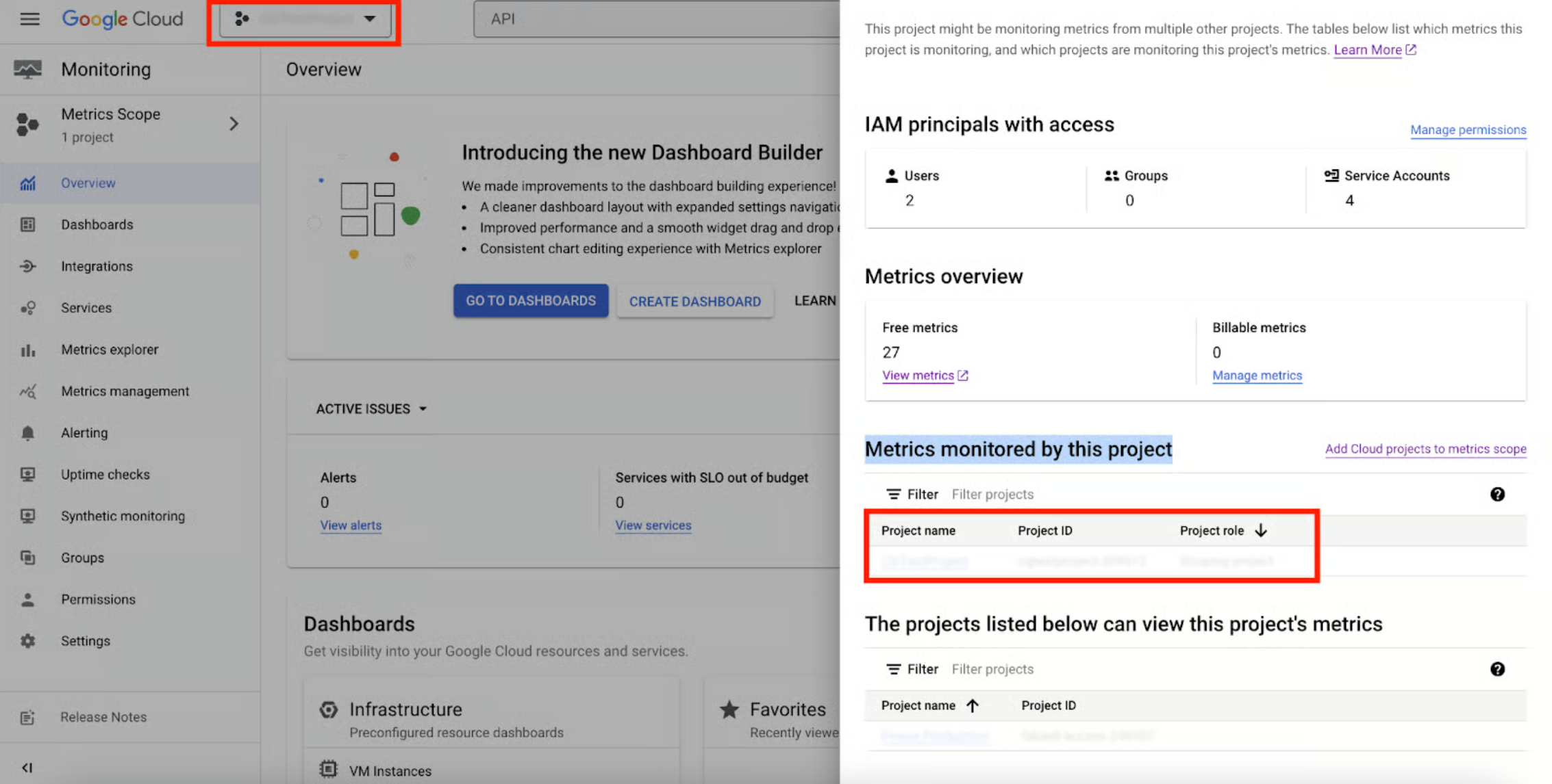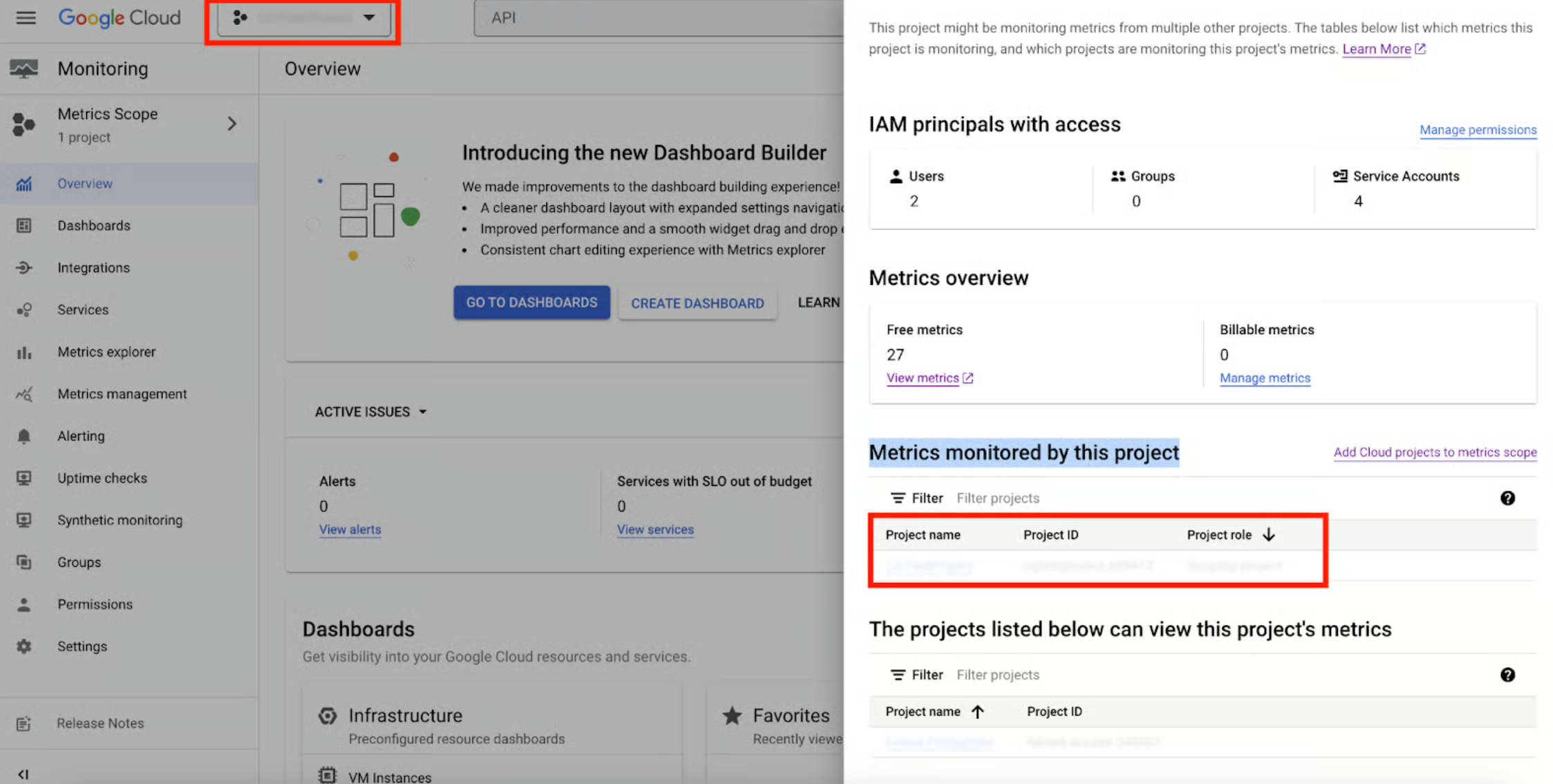 4. Adds 'Monitoring Viewer' role permissions to the desired project.